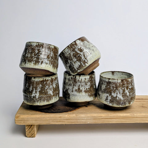 Espresso cups in ochre brown matt glaze.