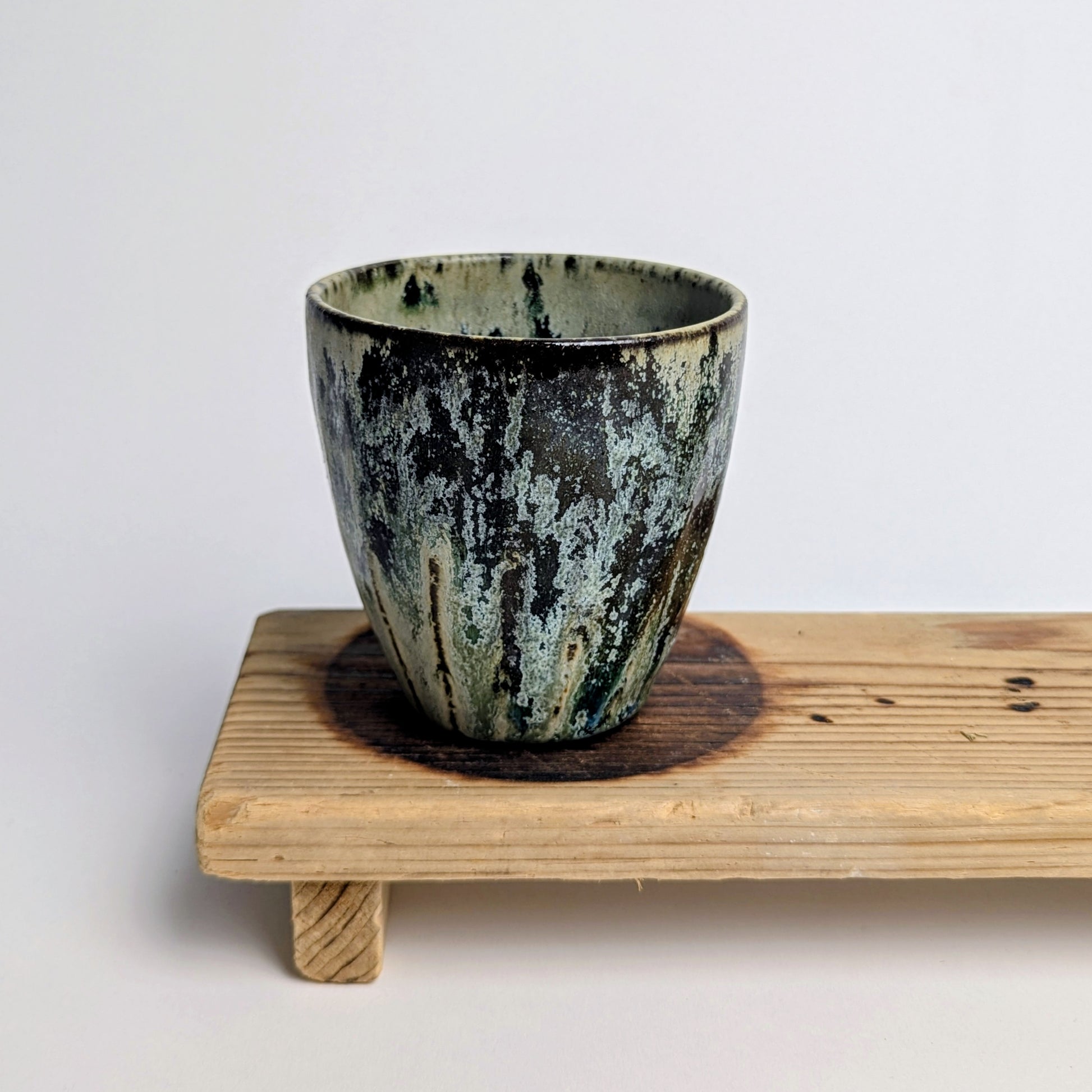 Latte cups in brown stoneware clay green or off white matt glaze.