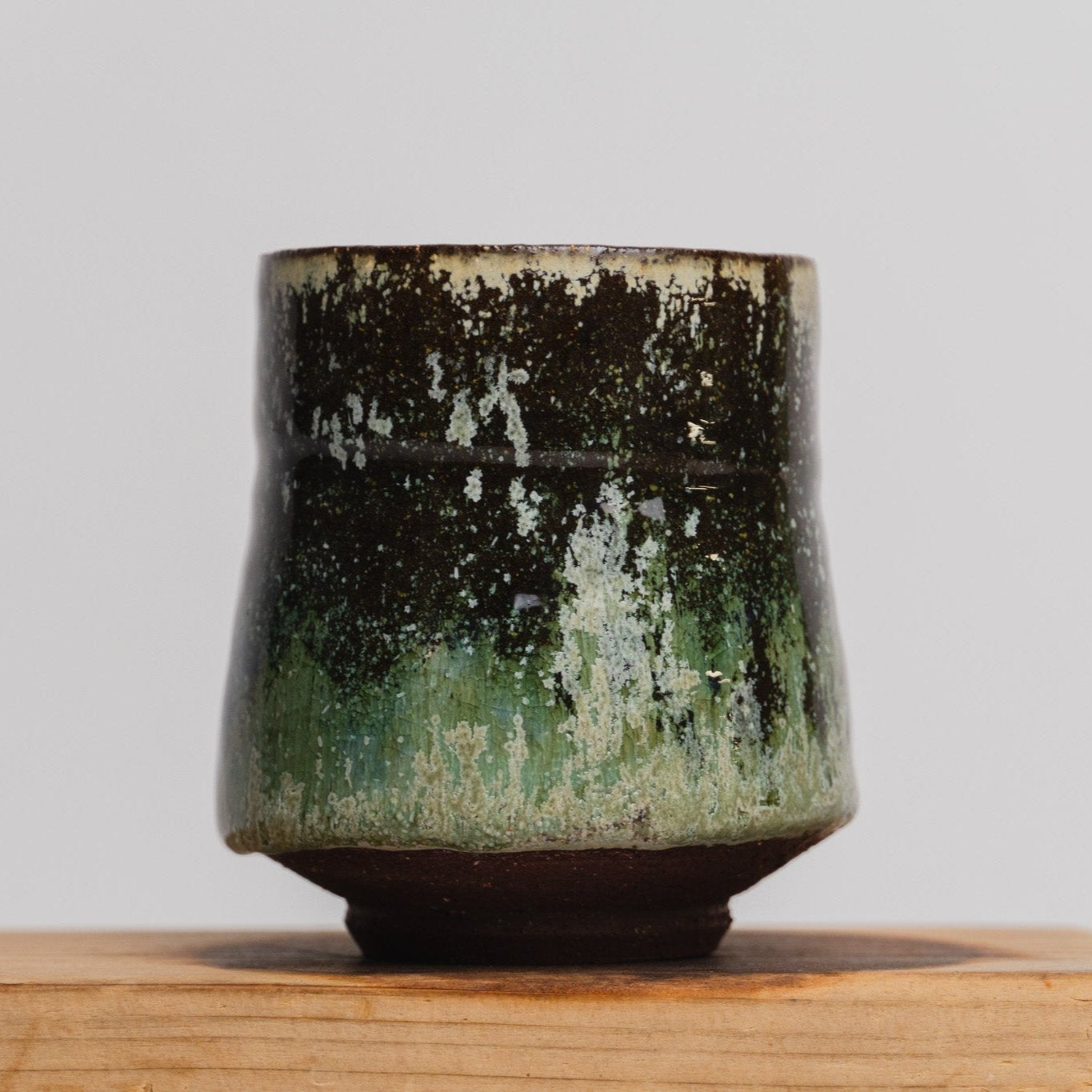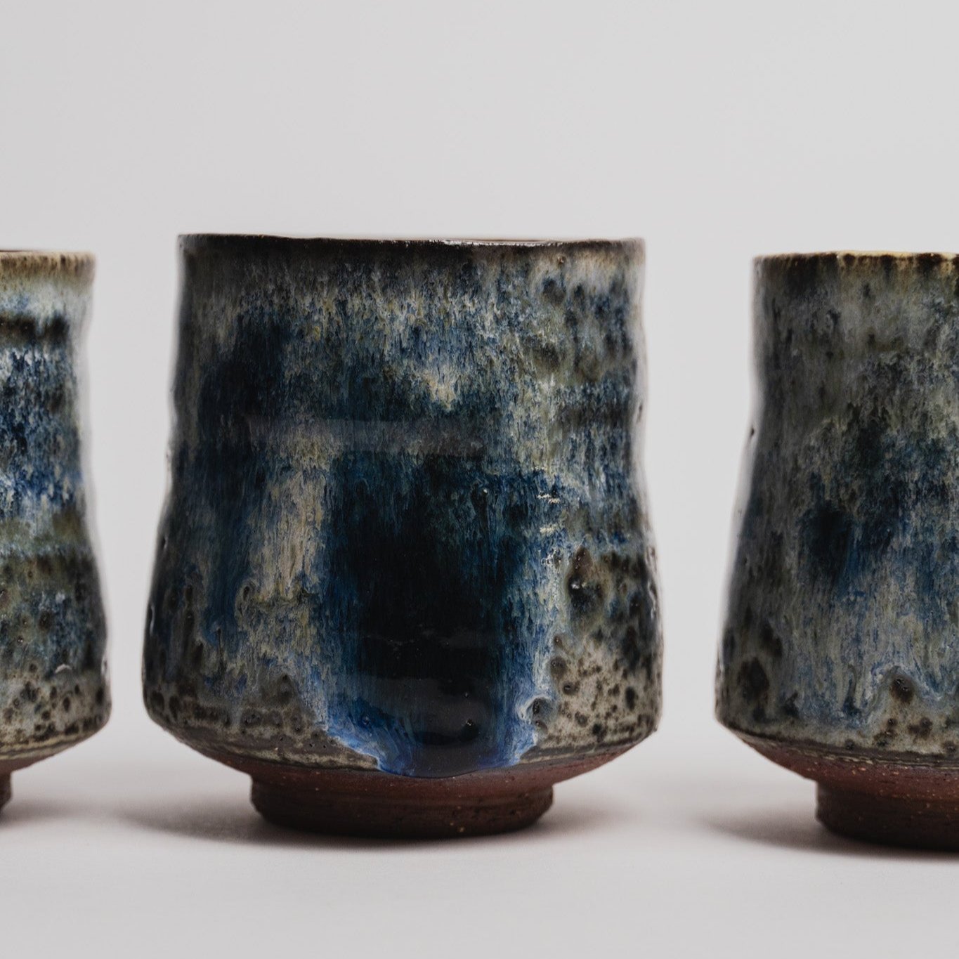 A hand thrown and turned yunomi in blue, green or grey stoneware glaze. Each is handmade so there will be slight differences between those pictured and those received—but I ensure they’ll be almost identical.